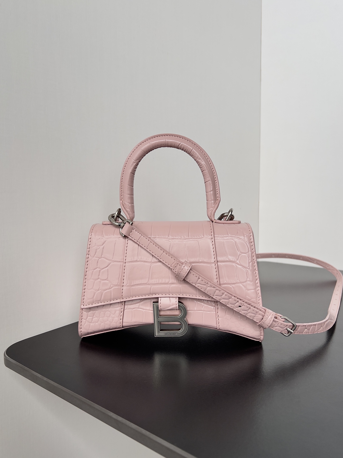 Balenciaga Hourglass Crocodile Pattern Ice Pink Hourglass Bag