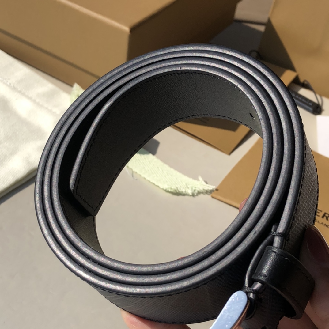 • “Burberry London” logo embossed at the end of the belt