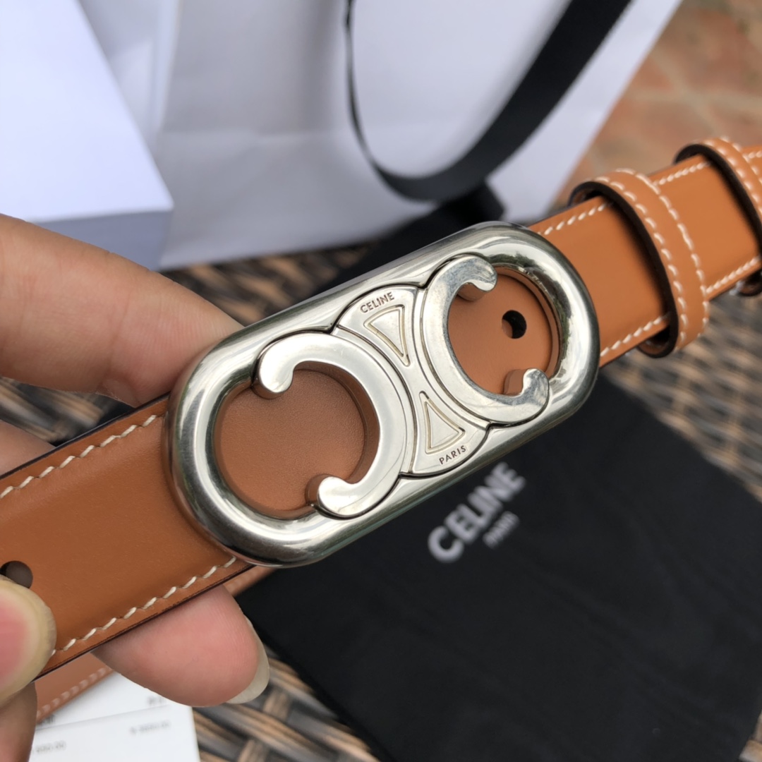 CELINE Triomphe Women’s Classic Vintage Silver Buckle Belt