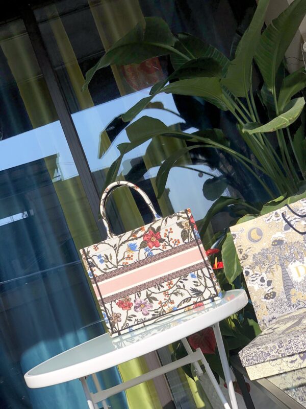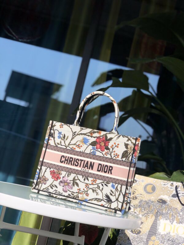 Inspired by the brand’s classic Oblique pattern, the delicate “Christian Dior” letter embroidery is laid out on the crisp canvas, showing the perfect combination of exquisite craftsmanship and artistic aesthetics. The three-dimensional silhouette with a large capacity and an inner patch pocket design combines practicality and fashion. Whether it is daily commuting or a short weekend trip, it can easily handle a variety of occasions and become a signature item for modern women to show their taste.