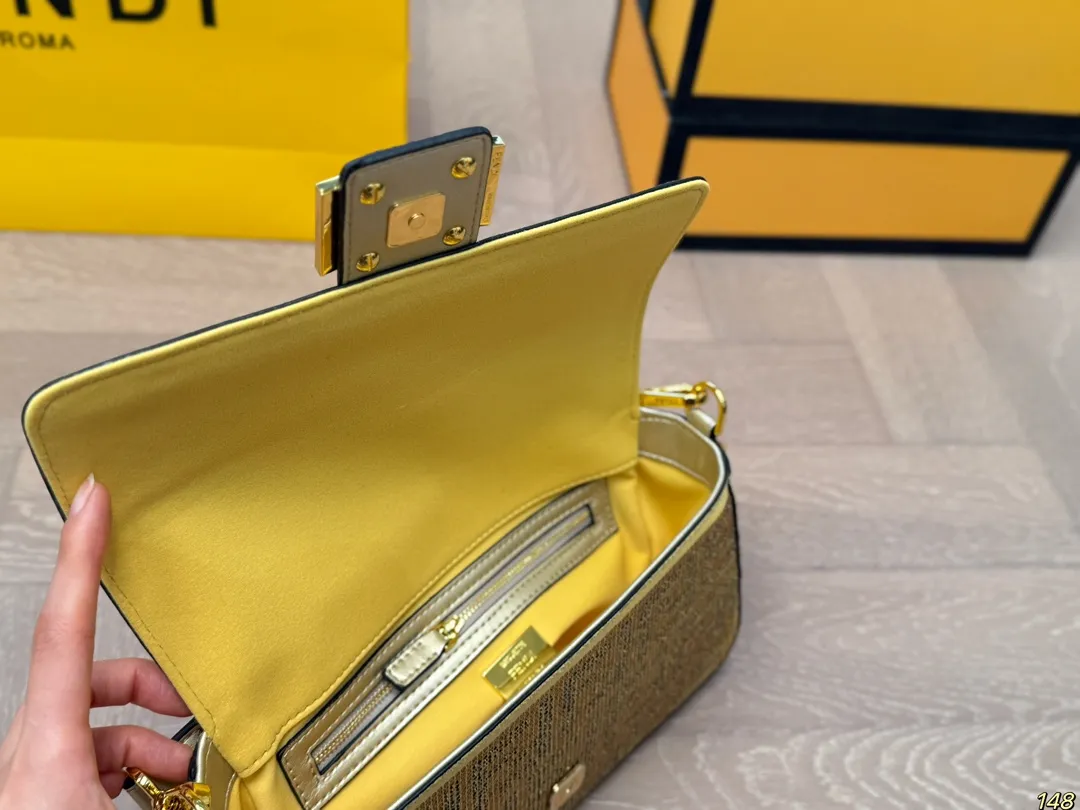 FENDI Fendi Baguette brand logo print detachable chain shoulder strap calfskin shoulder crossbody handbag mini women’s champagne