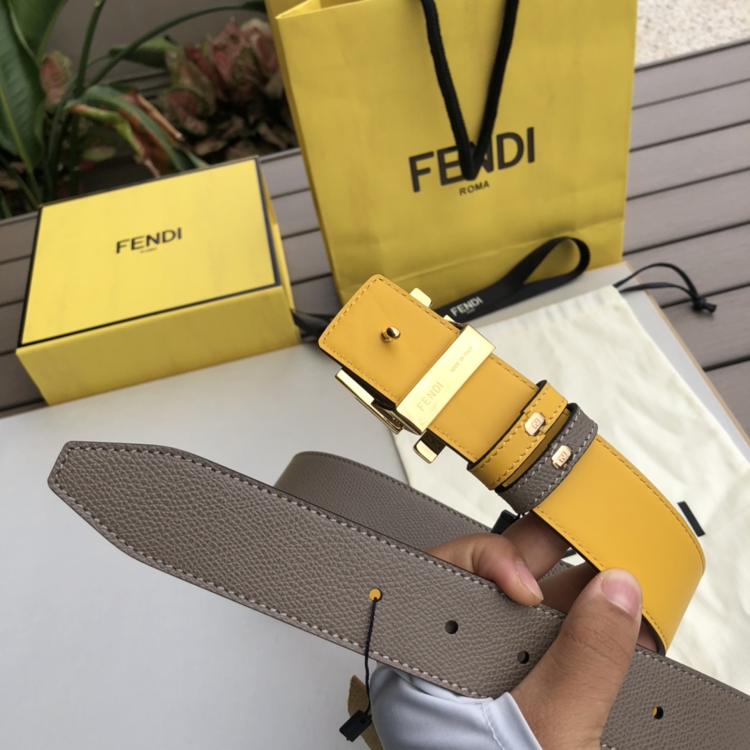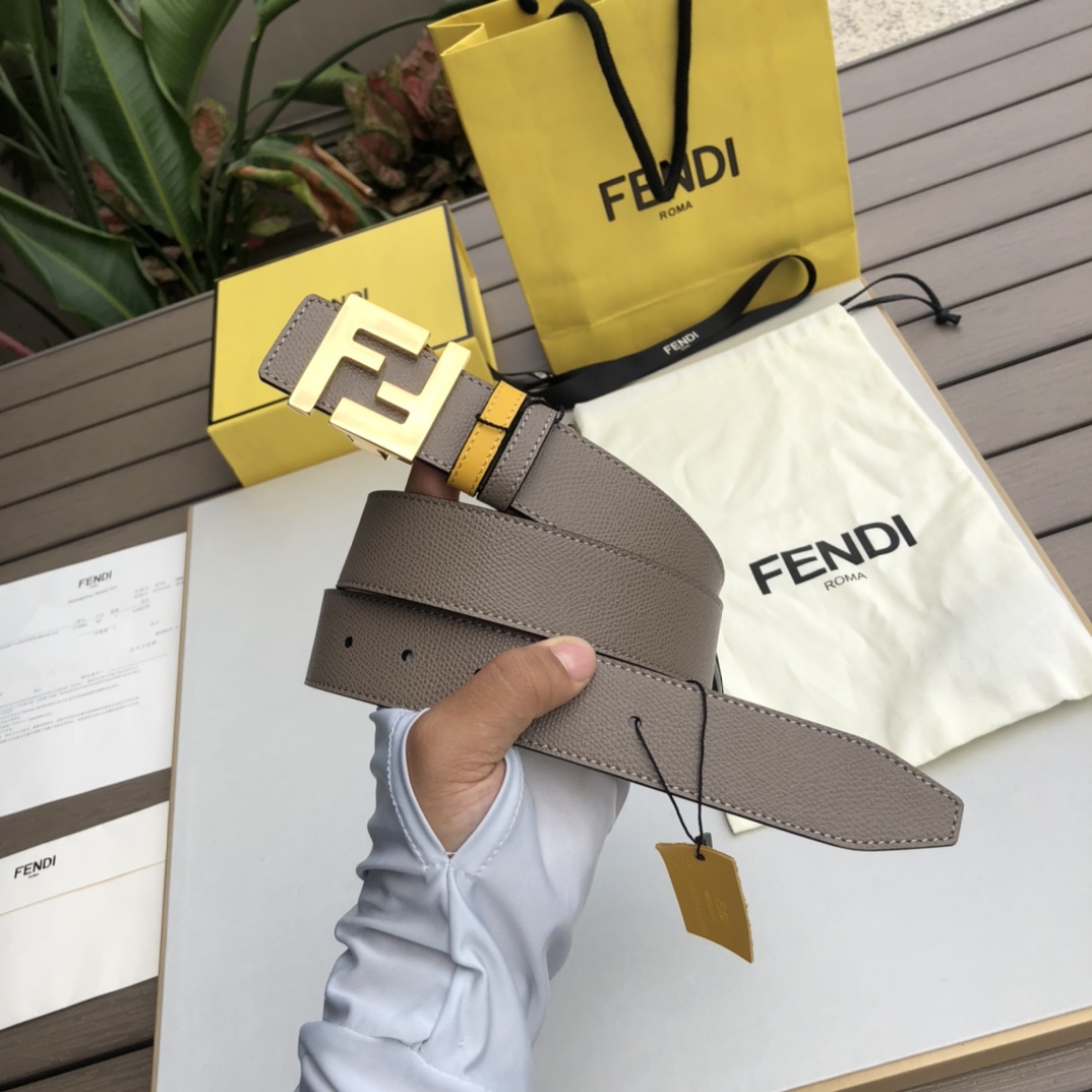 FENDI Men’s Double-Sided Cross-Grain Leather Belt