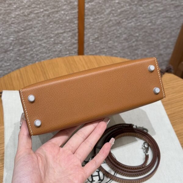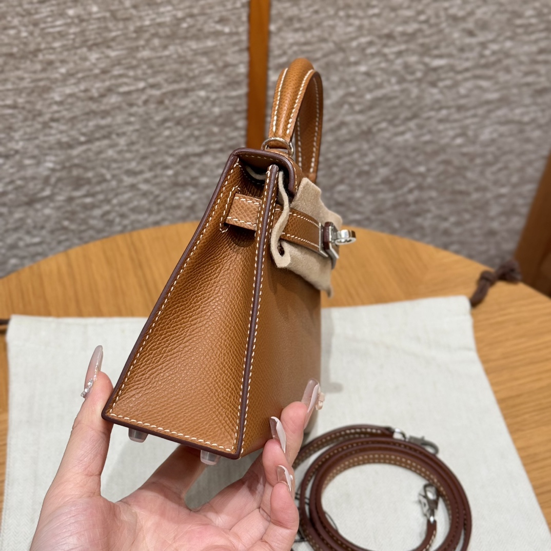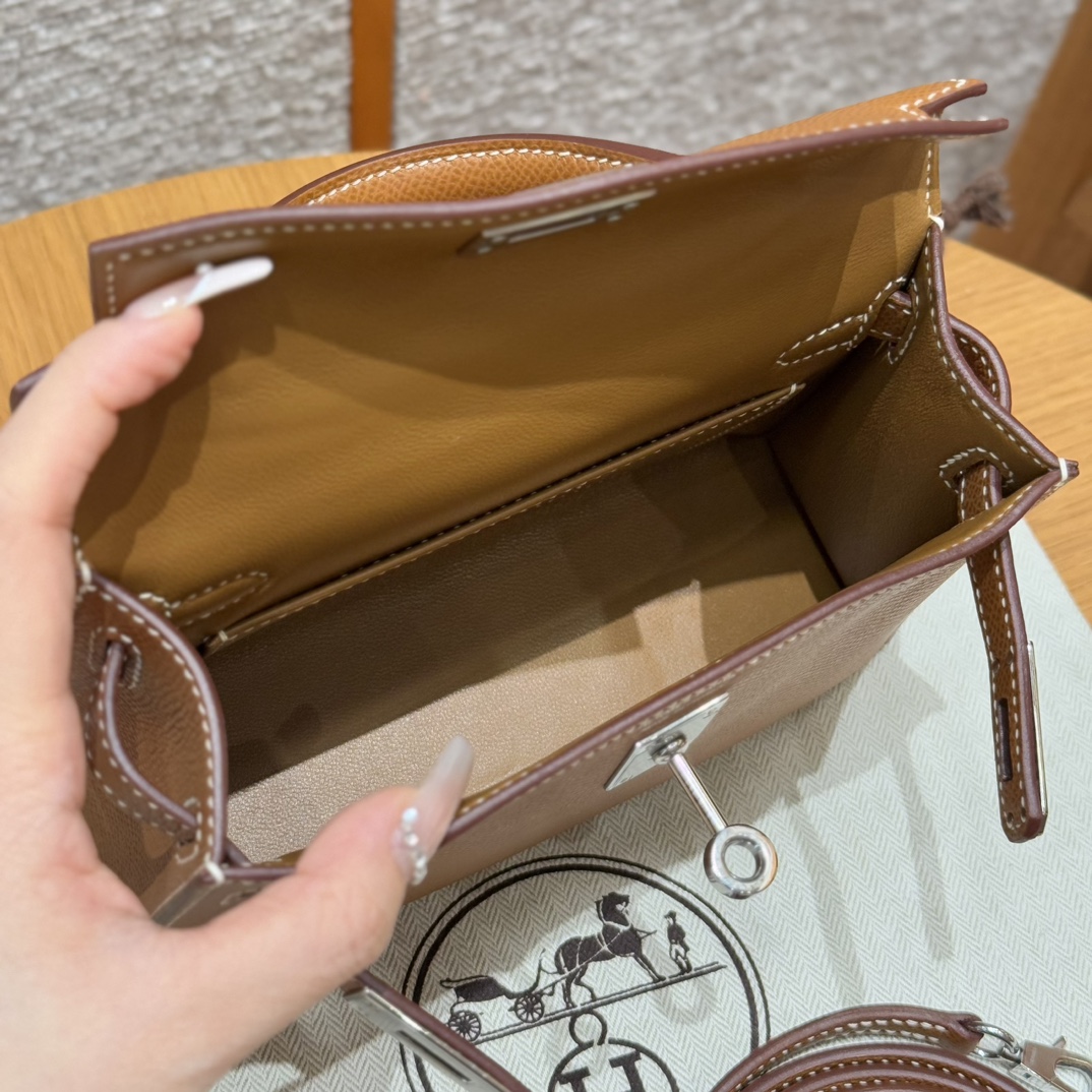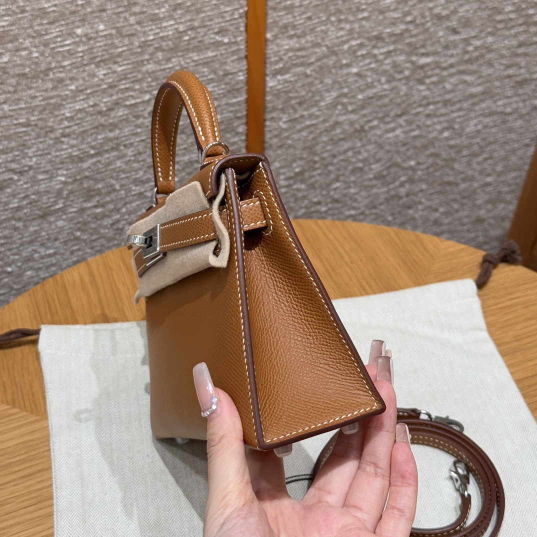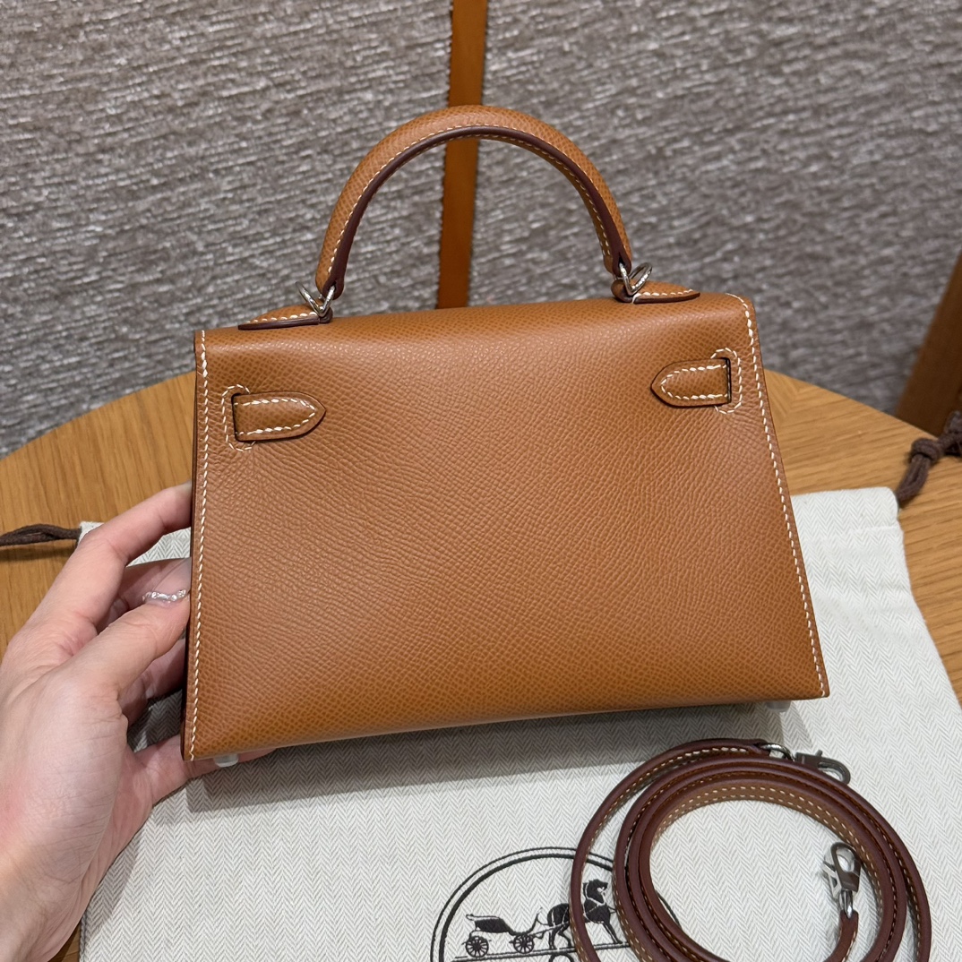 Mini Kelly II, golden brown, French imported cowhide, silver buckle, high-end fully handmade exclusive customization‼ ️ Purely hand-made nails, hand-carved hardware, fine steel electroplating 18k hardware
